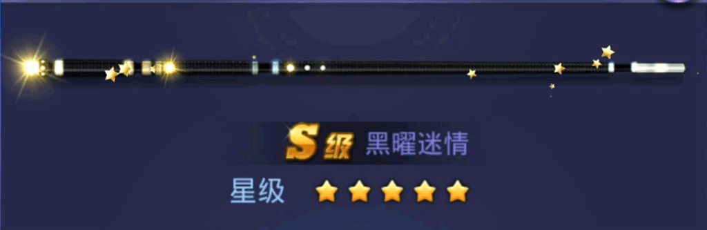 球杆核心部分采用整根黑曜石打磨而成,因此其重心平衡相当完美,适合各类人群使用。杆身镶嵌的环状的金曜石和电气石更突显了它的尊贵。同样可进阶至S级,属性也是同级球杆中最高的,如果没有A级以上的杆,此杆也是值得一用的。